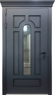 Металлофиленчатая входная термодверь с карнизом, ковкой, остеклением и порошковой покраской антрацит создана для тех, кто ценит надёжность, комфорт и эстетическую выразительность. За счёт соблюдения производственных стандартов дверь подходит для установки как внутри помещений, так и на фасадах зданий.